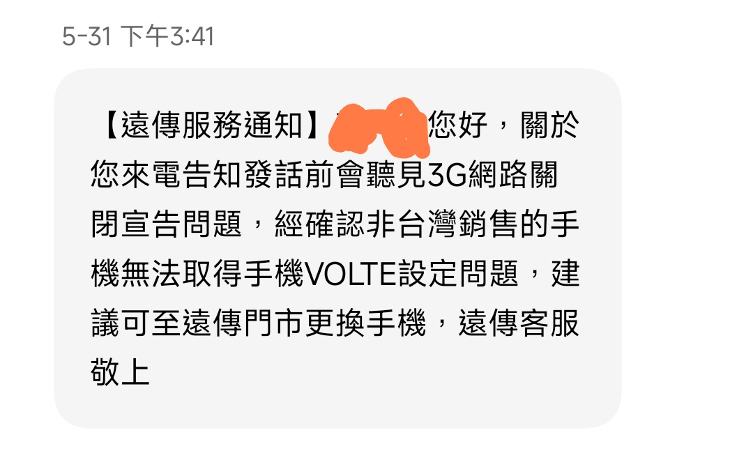 ZakuAmazing : 有開VOLTE嗎 上次我關掉幾天也收到簡訊 06/17 14:28