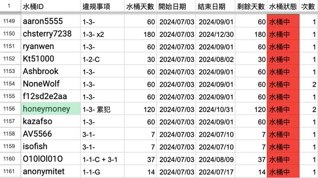 「違規事項」「水桶天數」