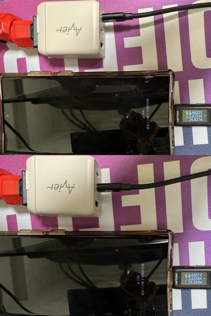 ▼連接低電量的Samsung S23 Ultra進行充電時,Avier One Step Terra65大地棕的C1/C2
