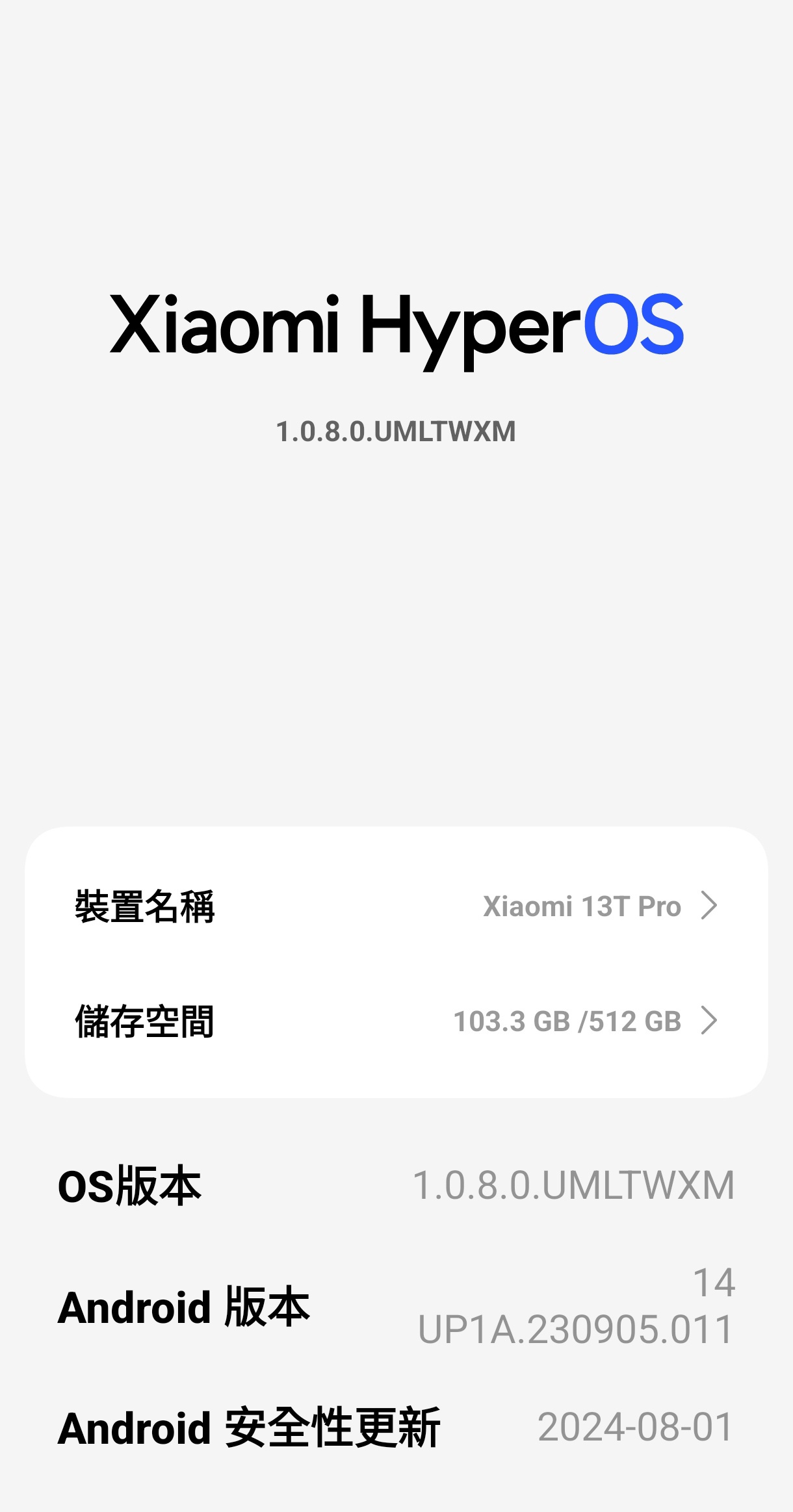 推 m4a3e8 : 小米13T系列也收到更新了 08/27 15:42
