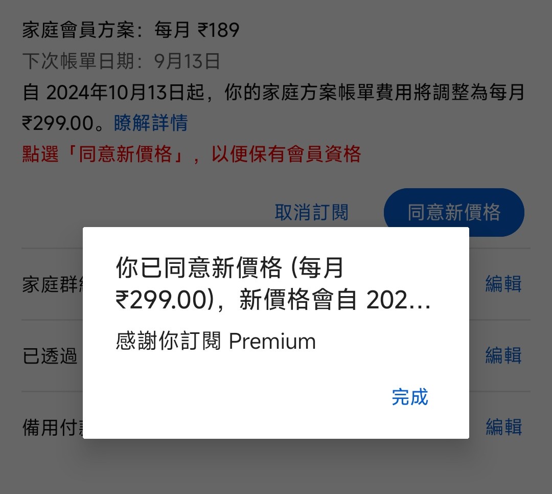 → ballcat : 印度區家庭方案要漲為約120台幣,可以分給5個人用 09/01 01:43