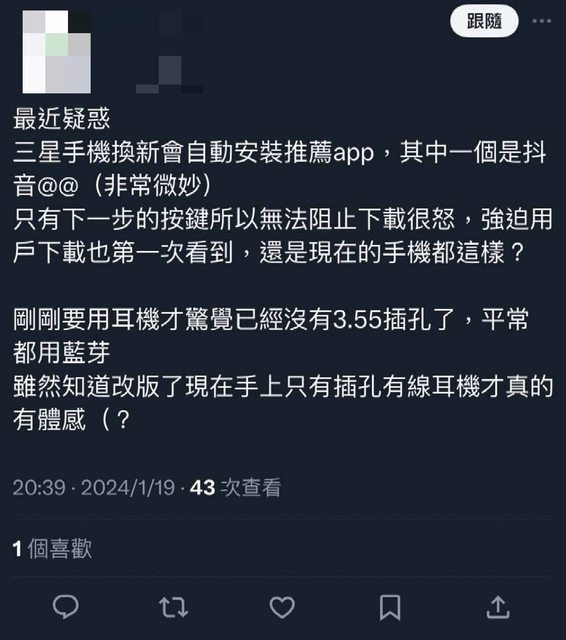→ justin332805: 還真的沒遇過三星的新機設定幫我下載什麼APP09/08 22:18