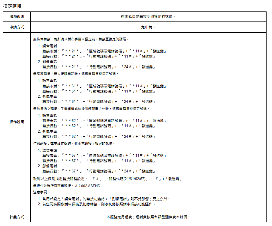 → Altair : 台灣大哥大TS 線上服務>服務設定>指定轉接 說明 09/10 22:00