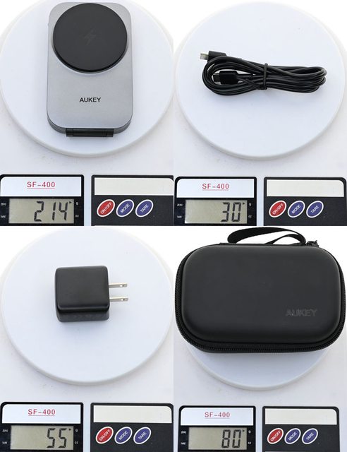 ▼AUKEY MagFusion Z Qi2三合一磁吸折疊式旅行無線充電盤重量214克,線重量30克,充