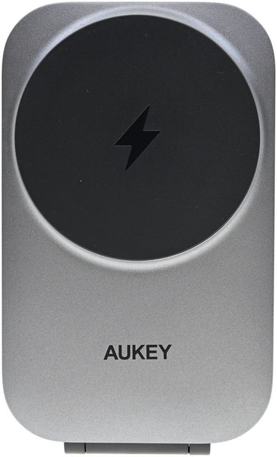 ▼AUKEY MagFusion Z Qi2三合一磁吸折疊式旅行無線充電盤折疊狀態下正面,閃電標誌