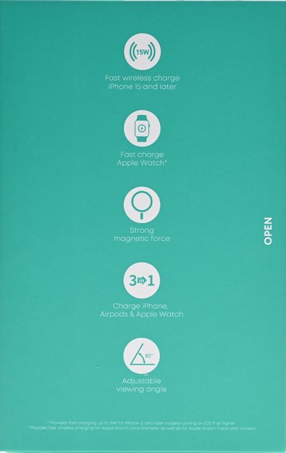 搭配iOS 17及以上系統,可使用15W無線快充;Apple Watch Ultra/Apple Watch 7及更新