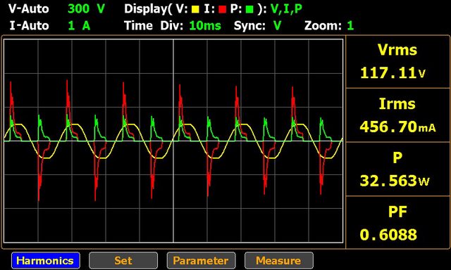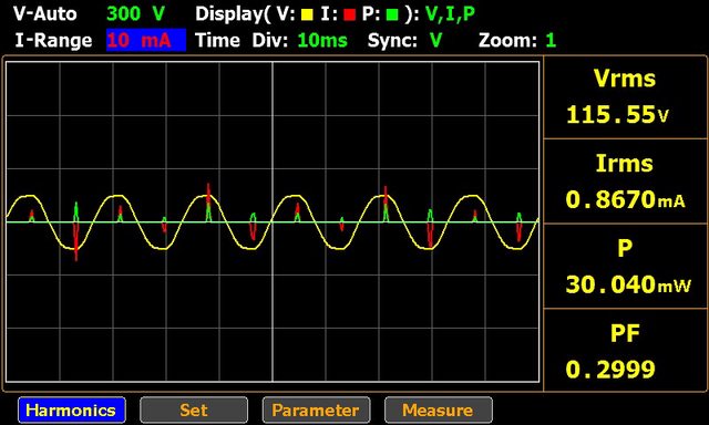 ▼充電器輸出30W的交流輸入電壓/電流/功率波形如下圖所示