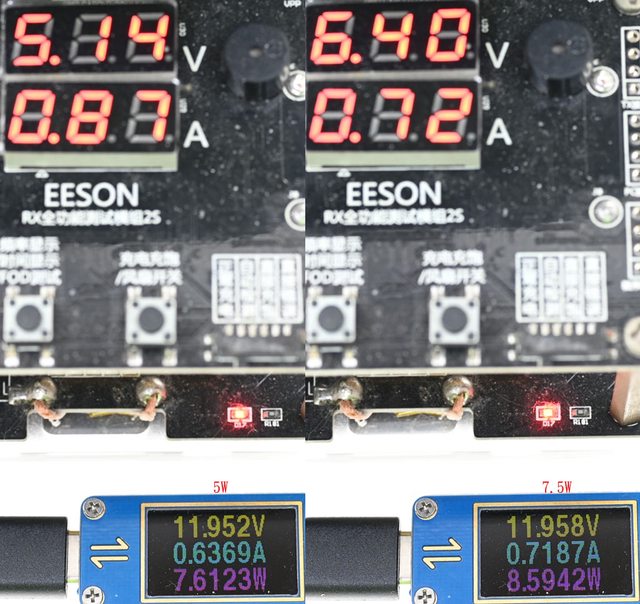 ▼耳機無線充電盤於5W/7.5W輸出下的輸入電壓/電流/功率
