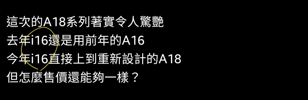 推 Lansmi : A18跟A17 Pro完全不是同一個等級,所有Share Cach 09/22 03:43