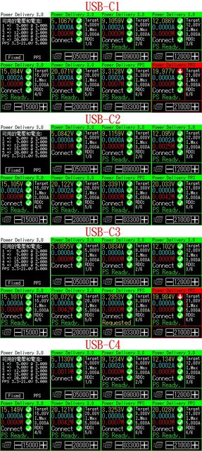 C1/C2/C3/C4輸出:5V/3A、9V/3A、12V/3A、15V/3A、20V/5A,PPS 3.3V-20V/5A,最大