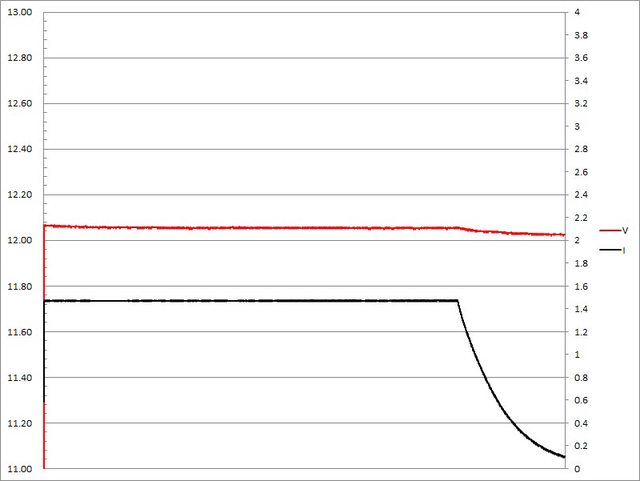 ▼USB-C埠12V/1A、12V/2A、15V/1A放電的電壓電流圖表如下所示,12V/2A放電2次才能完