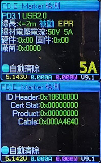 ▼E-Marker資訊,電力傳輸支援PD3.1 EPR 50V/5A,資料傳輸支援USB2.0