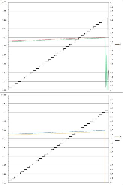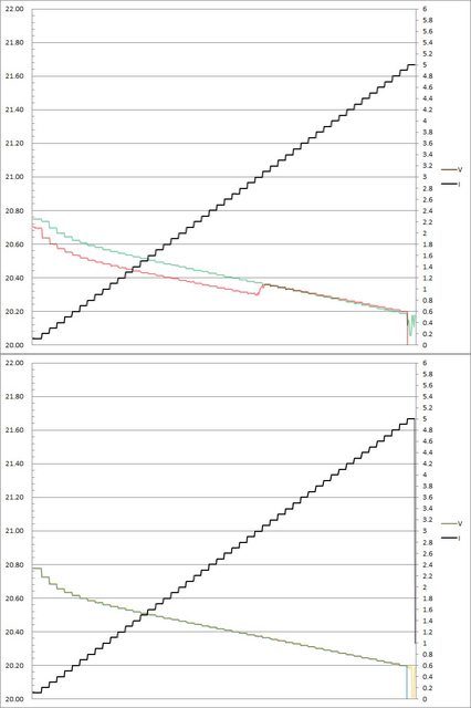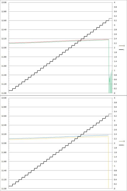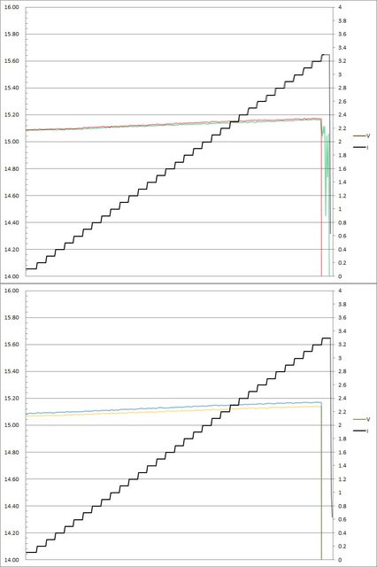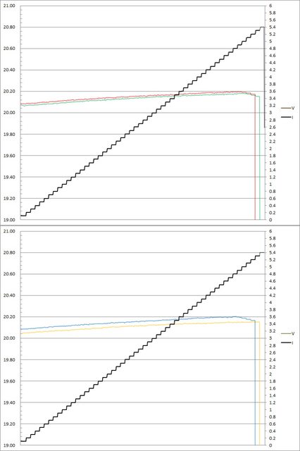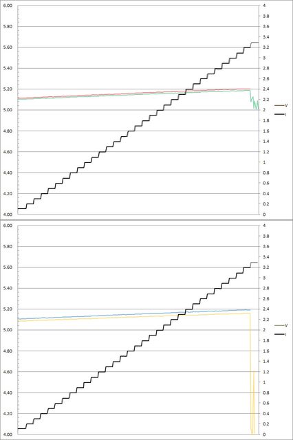 加,輸出電壓上升,PD1/PD3輸出電流超過5.2A壓降,超過5.3A截止;PD2/PD4輸出電流超