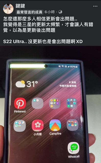 → segio : 最新進度進化到S22啦.三星手機持有超過兩年小心囉.. 10/29 07:23