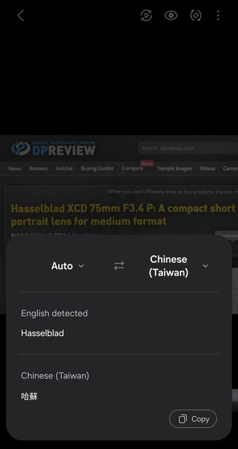 不管取景還是拍照後圖片翻譯都一樣。然後不是用bixby,我早就移除了那個爛東西。