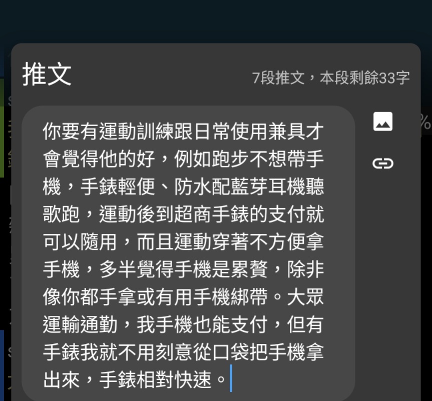 → manbow77 : 那就自然是智慧錶贏過手機了尤其續航和輕便性 11/11 11:04