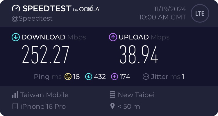 推 bhis : 在我的日常生活範圍,台哥大比台新星速度快訊號也11/22 20:03