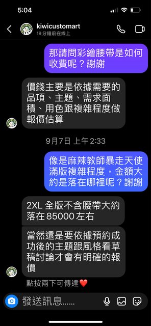 推 XXPLUS: 他接單畫一條原創彩繪也是收8萬5啊,客人指定啥就畫啥, 01/19 01:17