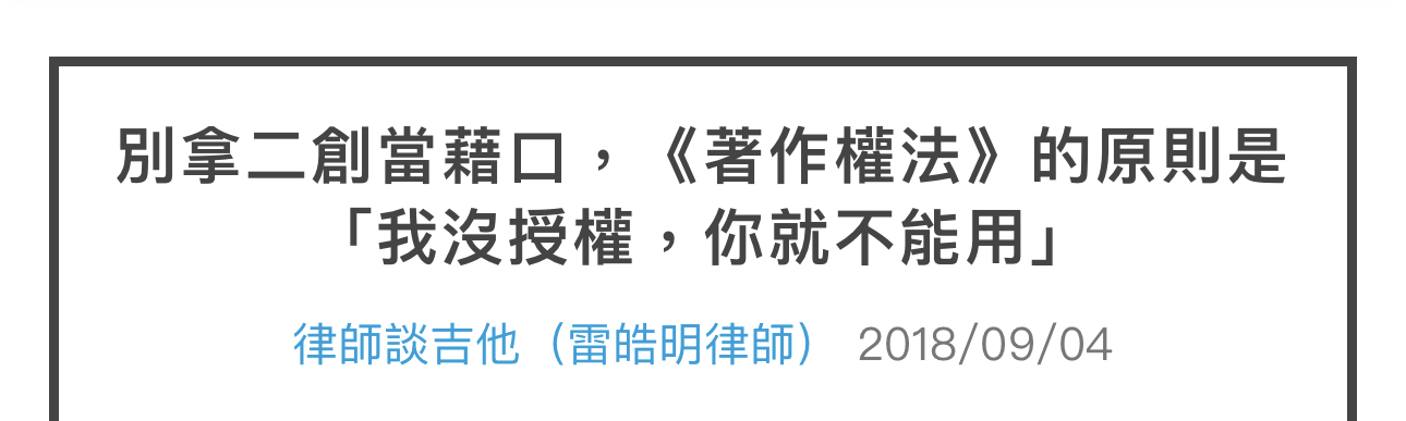 → kinma: 我之前就有告過人家侵權啦,雖然只是文章著作權沒有什麼很 01/18 01:42