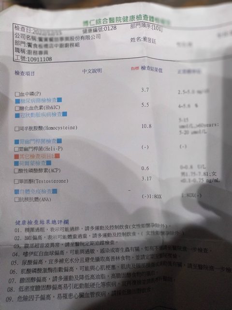 推 hhttkk: 這數值其實和年紀等等因素都有關,我驗過低到正常都有 02/24 11:09