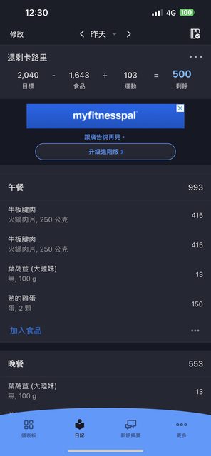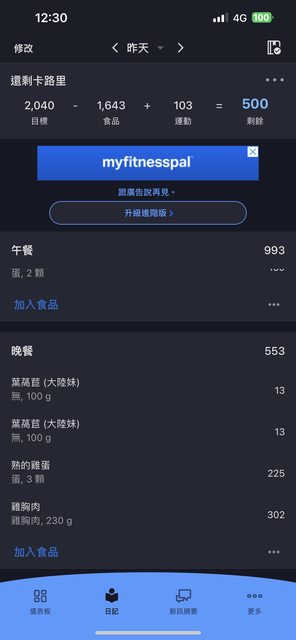 然後飲食方面目前有開始自己煮了,主要是跑低碳高蛋白中脂肪的阿金飲食法,每天熱量赤字大概都在my fitnesspal給的目標再往下減個200-500