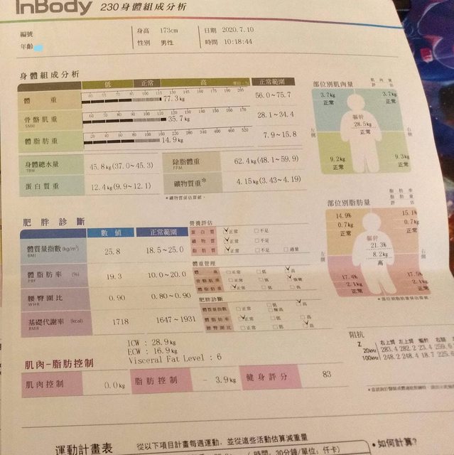 這一兩年已經不太在意Inbody數據了,不過健檢剛好有身體組成