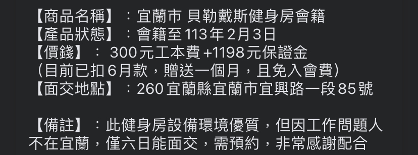 推 davendaven1: [轉讓]三重提爾健身房,合約至2024年3月,每月888 06/14 23:29