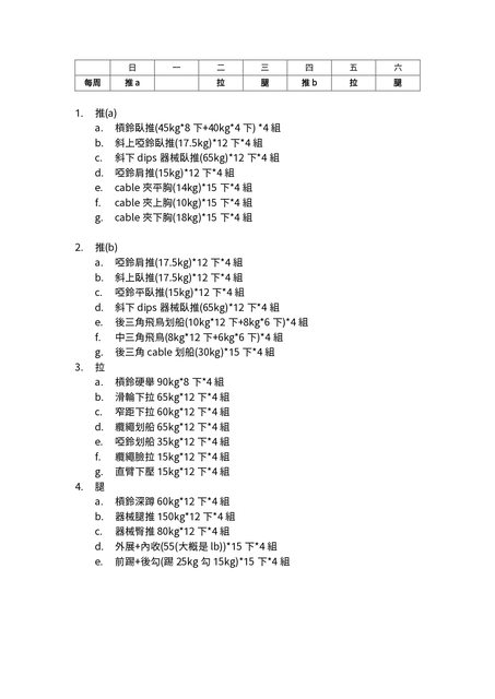 → kqqr2: 中期:堆肌力,每個平面縮到剩1~2動作,每動作3組 05/17 12:12