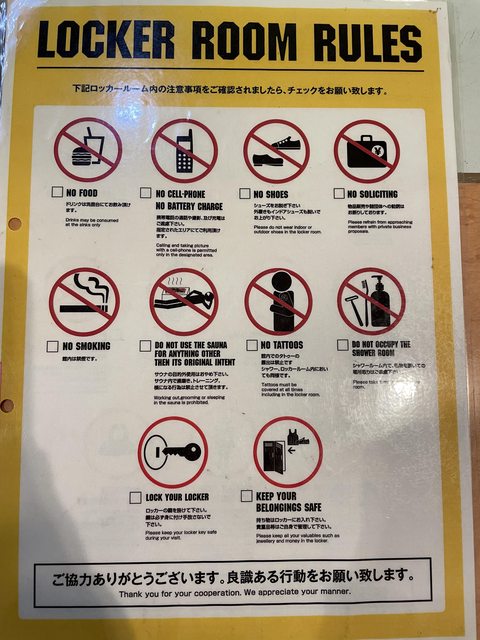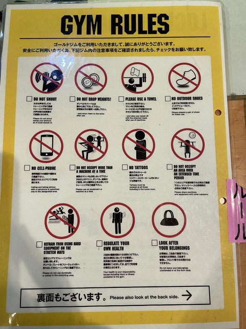 再來是規定,日本健身房與台灣很不同的地方就是有很多的規定,