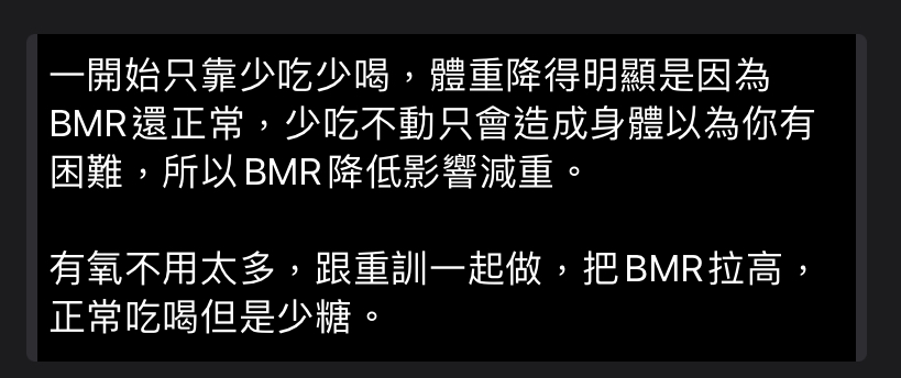 yawenla: 要先知道自己的bmr,而且tdee可能也高估,所以先拉高訓練07/09 14:54