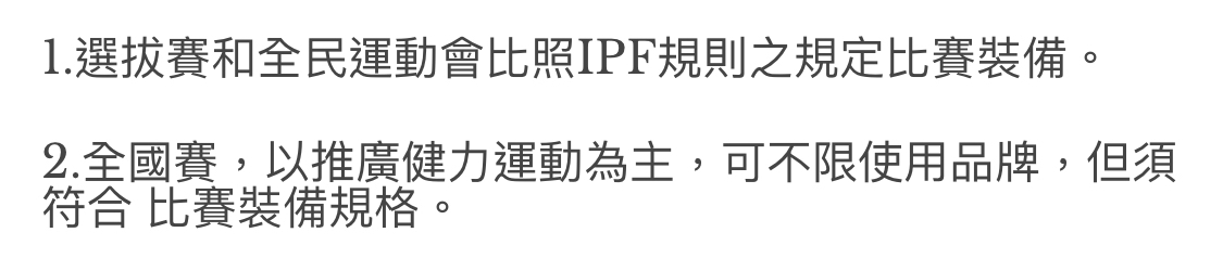 QRCC: 是,台灣辦的正規健力賽不管大小場幾乎都跟著IPF規定走,大 07/10 07:50