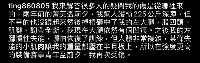 → yenkuass: 全身而退 護槓絕對最安全 現在都不測單下最大重量了 07/23 11:50
