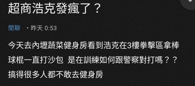 sos7770013: 有些人就很好笑,只要是認為警察執法不當等於支持浩克 07/28 11:56