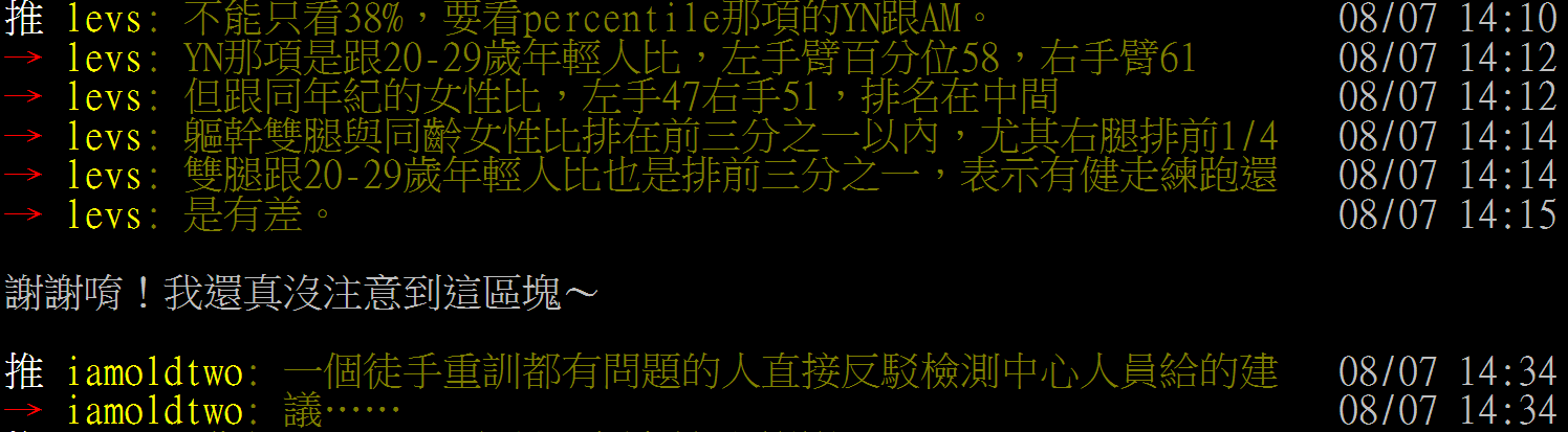 → levs: 原PO我都不看體重的 還希望體重不要掉 看腰圍跟體脂率 08/08 13:52