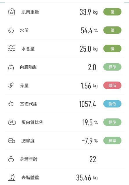 : 附上鍛鍊7天後,昨日剛買的藍牙體重計測出的數據