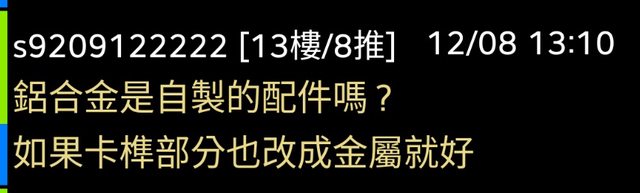 → XXPLUS: 例如把握把表層改成鋁合金材質就不必擔心生鏽,也有刻意 12/12 00:33