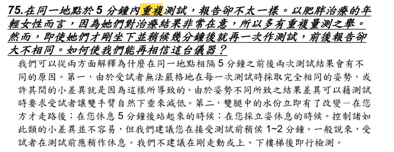 → jimmyfk: 就是量測時不要故意搞怪, 常常兩次量出來的體脂一模一樣 05/16 02:36