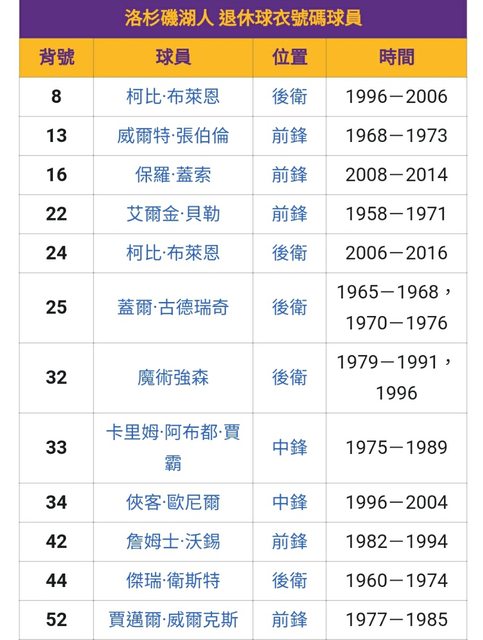 → owenxeve : 史上第一冠有歷史意義退休球衣就算了,但對湖人來 07/29 13:15