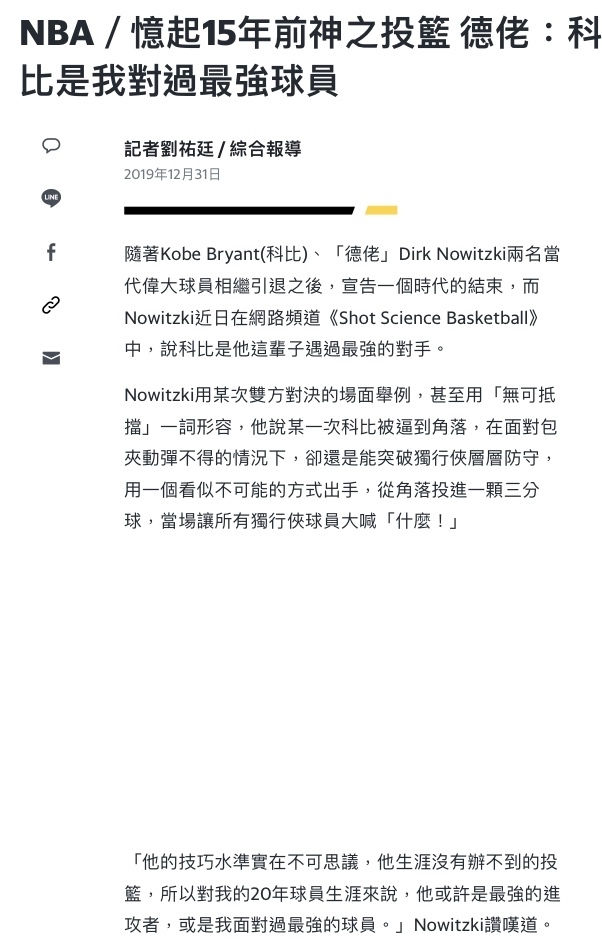→ tatata : 獨迷看Dirk二十年 絕對知道他指Kobe Wade 08/12 18:30