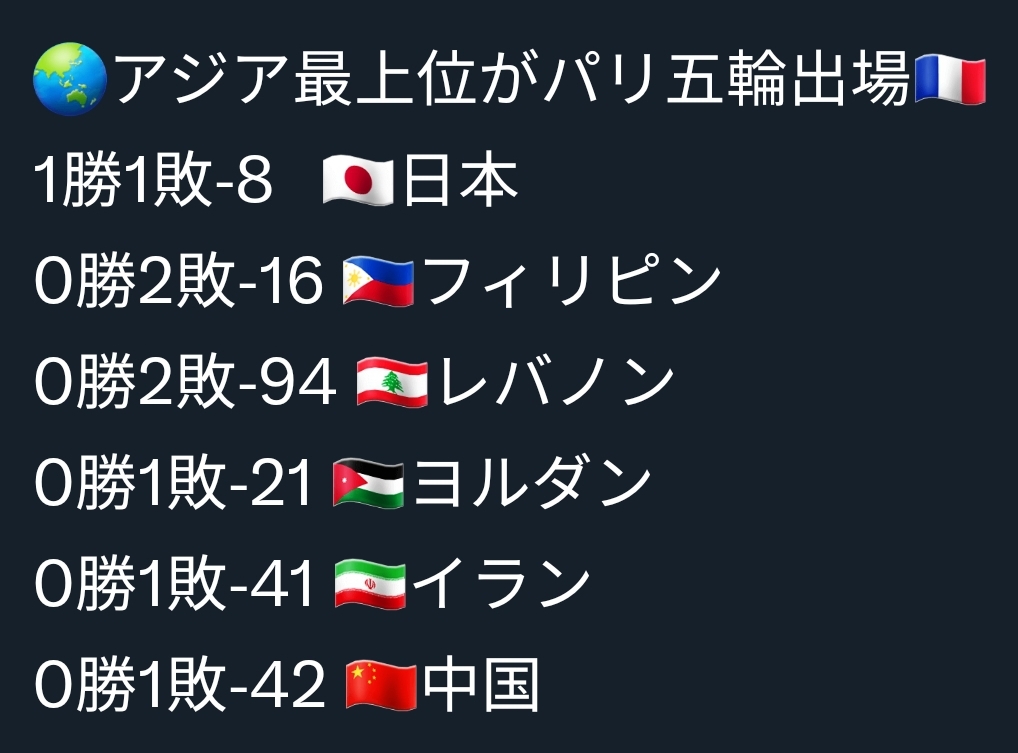 推 JouEriko : 中國第一場輸42分,日本又贏中國就機會渺茫了。除 08/28 12:56