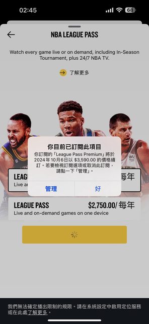 推 howbinlau : 去年黑五購買、取消自動續訂後不能看+1 10/23 13:25