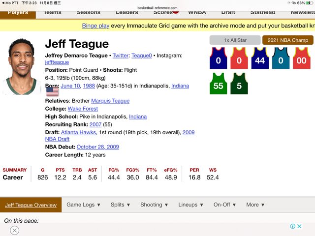 → skylove21 : Teague也拿過冠軍 更別說生涯數據了 11/08 14:24