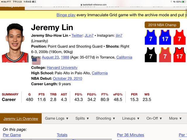 推 b14011030 : 提革NBA出賽數快要是兩個林書豪了,數據和榮譽都更 11/09 07:08