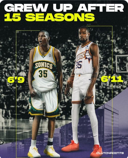 推 qtzbbztq : 看KD站在Wemby旁邊 還不算小隻 就知道KD少報很多了 11/22 14:37