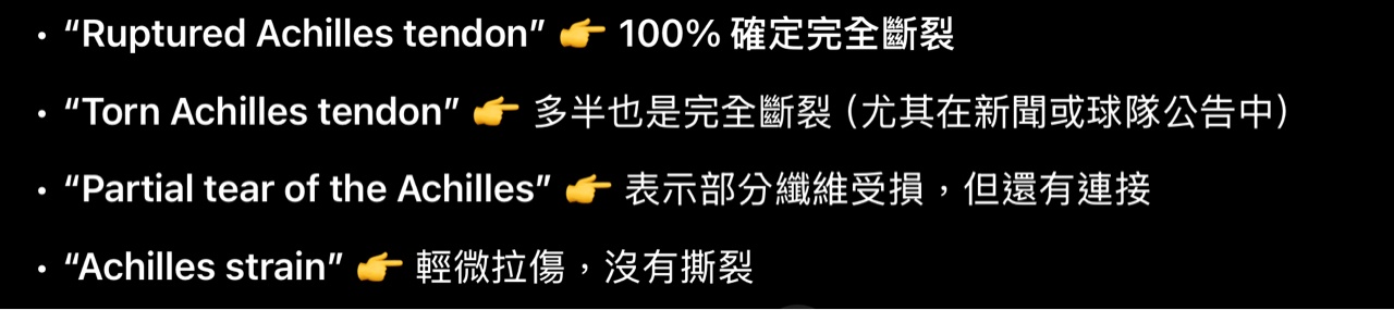 推 dahlia7357 : NBA對於小腿拉傷後續引發的阿基里斯斷裂似乎沒輒 06/24 10:22