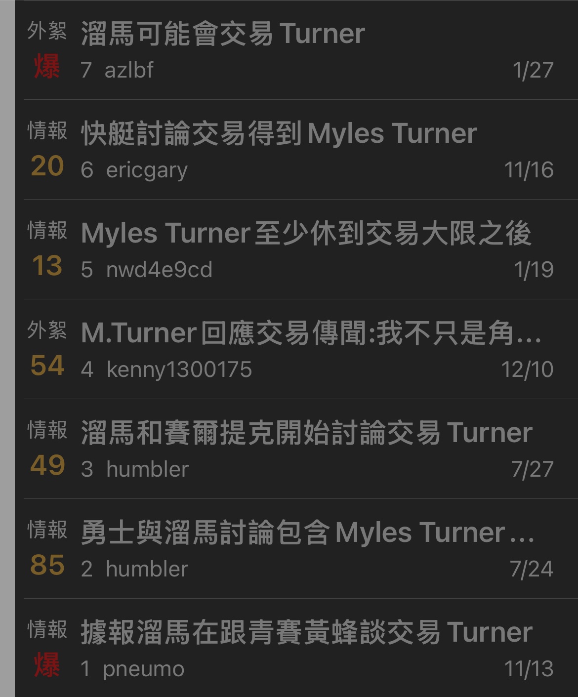 推 RUSH2112 : 每年都說要交易 結果最後都留隊的溜馬名宿 06/28 20:30