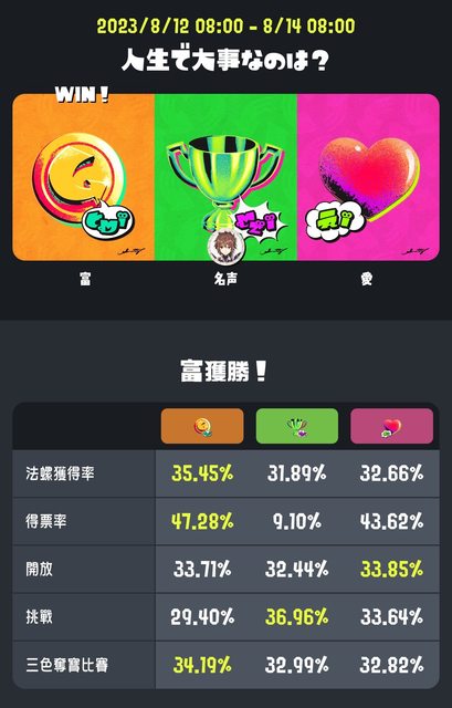 → ItachiKami: 有點意外 我原本也以為選財富的會更多 08/14 10:15