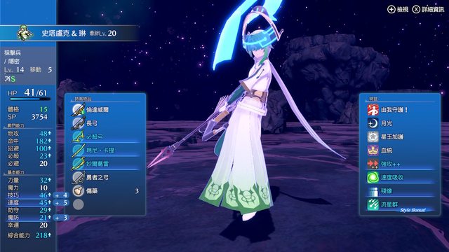 一次遠程攻擊增加;結合指令「戰技」透過消耗結合剩餘回合數,提供迴避敵方一次攻擊
