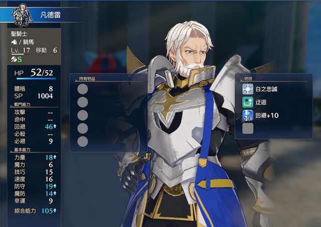 之盾」高機率抵擋相鄰我方每次戰鬥中一次傷害);特技「雙重攻擊」可參與我方連鎖攻
