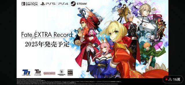 : 那個做很久的Fate/Extra Record 要在2025發售